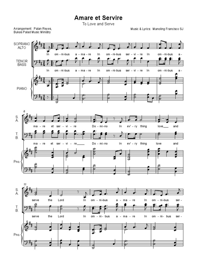 Upload your own music files. Lyrics for Amare Et Servire - To Love and Serve by Jess Fernandez SJ. Christ Be Magnified 6.