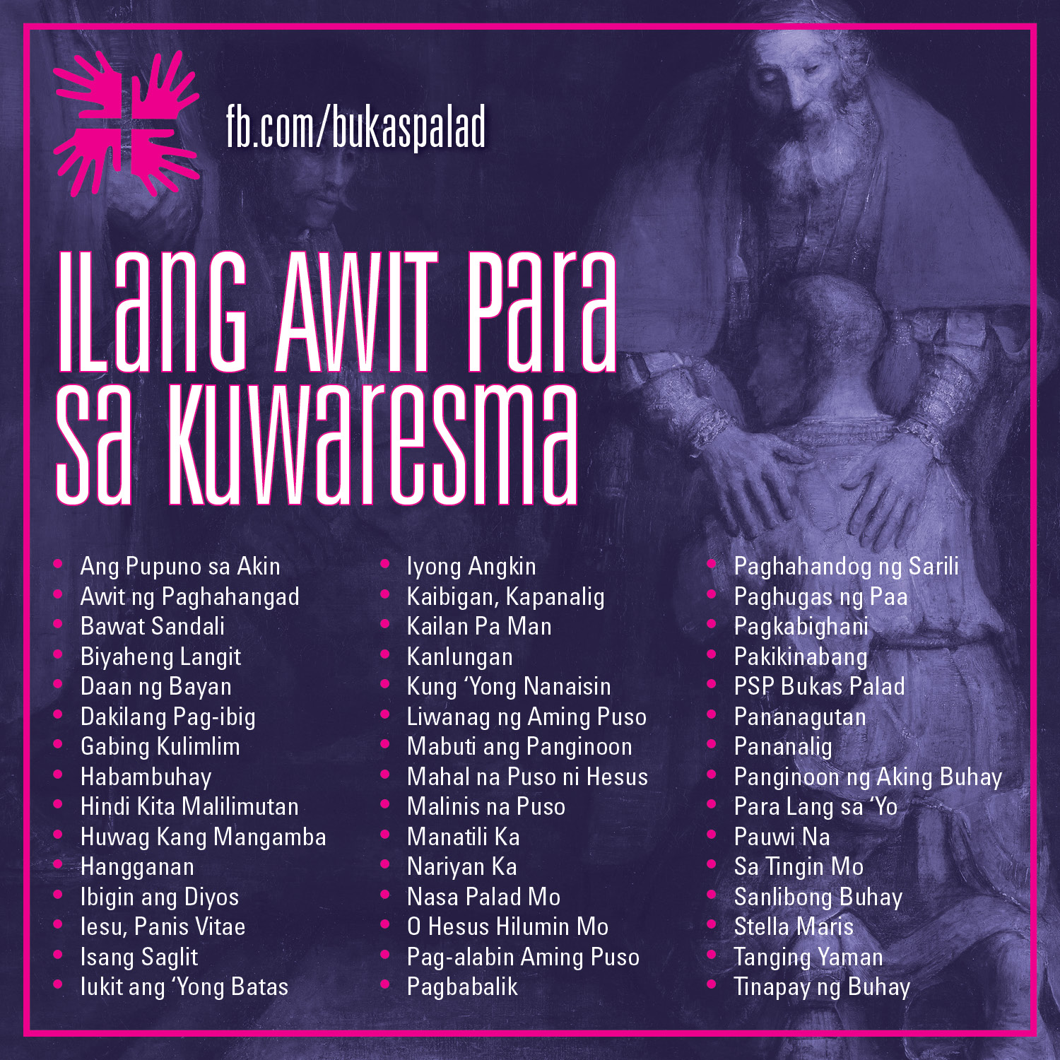 Bukas Palad - The Best of Bukas Palad Vol1 Songs in Filipino Silver Anniversary Edition Awit ng Paghahangad. Dadalangin akong nakataas aking kamayMagagalak na aawit ng papuring iaalay Koro. Gunita koy Ikaw habang nahihimlay Pagkat ang.